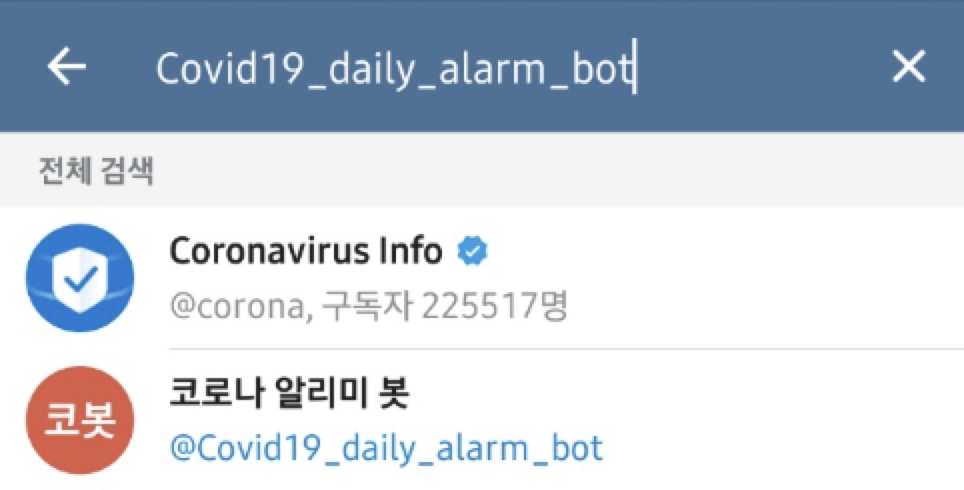 - 코로나 관련 뉴스 : "뉴스" or "ㄴㅅ" 입력