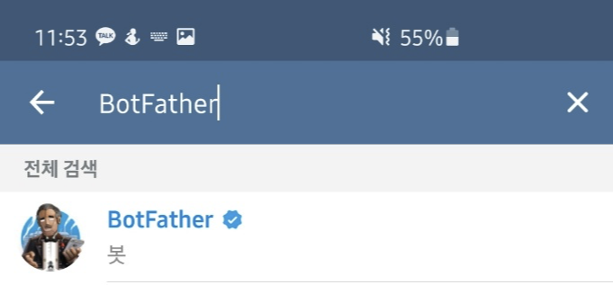 화면 우측 상단에 있는 돋보기를 눌러, BotFather 라고 검색해줍니다.