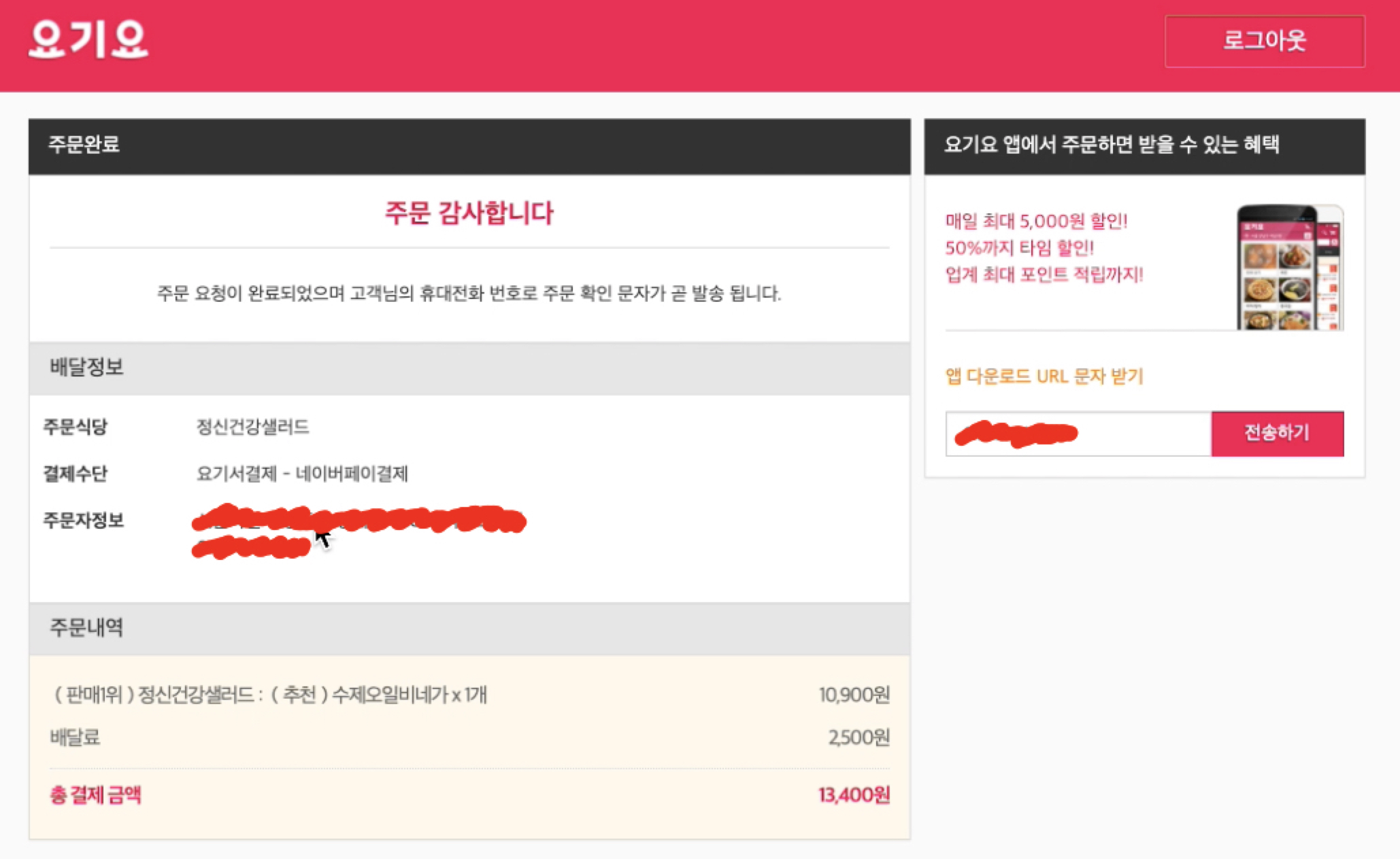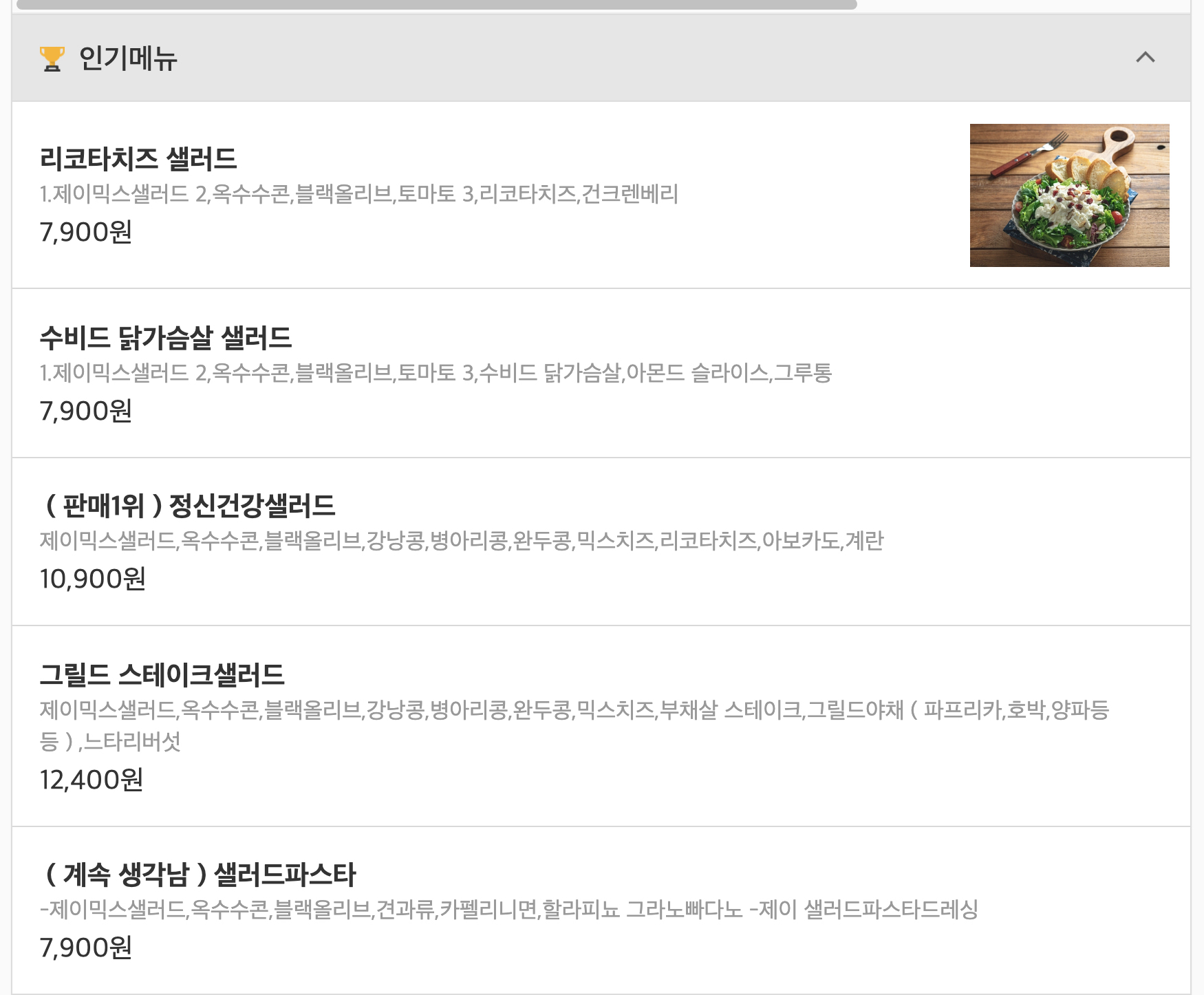 그냥 강제로 샐러드 주문하고 결제까지 하는 거다.