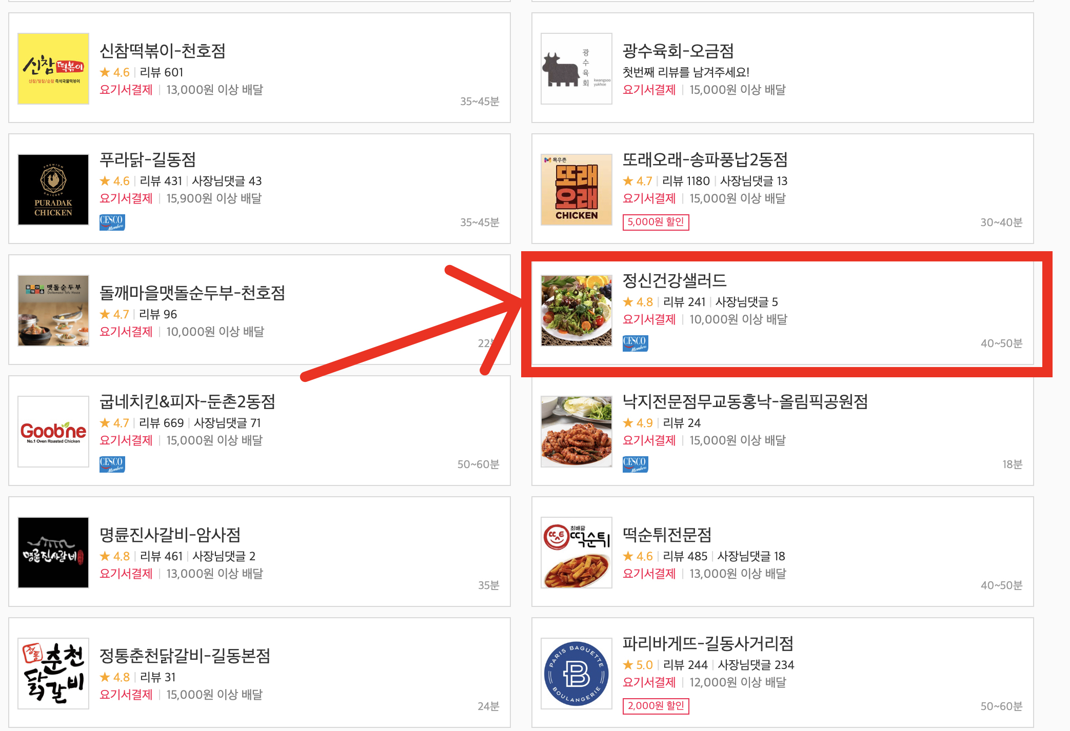 과연 우리 동네에는 샐러드 배달집이 있을까.. 두근 거리며 찾아봤는데,