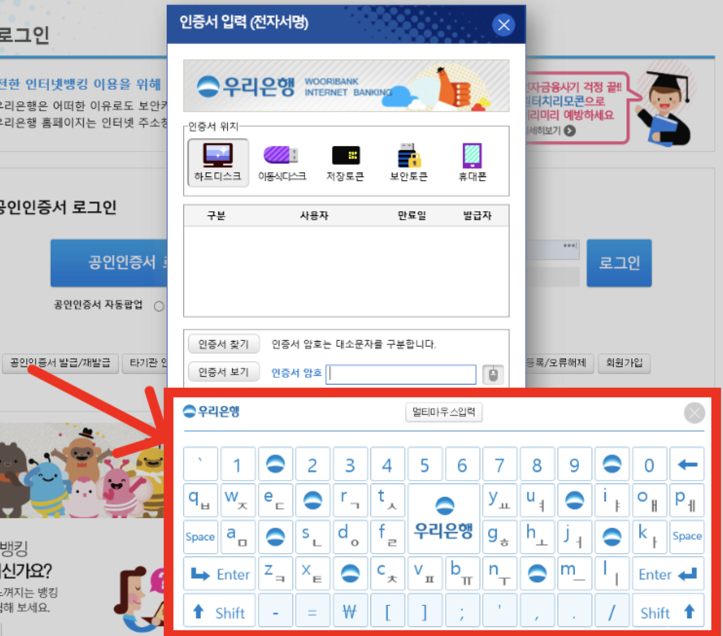 이를 활용하면, 아래 같은 공인인증서 가상 키보드를 입력할 때에도 사용할 수 있다.