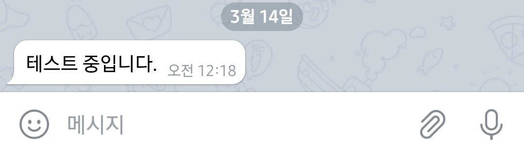 bot.sendMessage(chat_id=id, text="테스트 중입니다.")